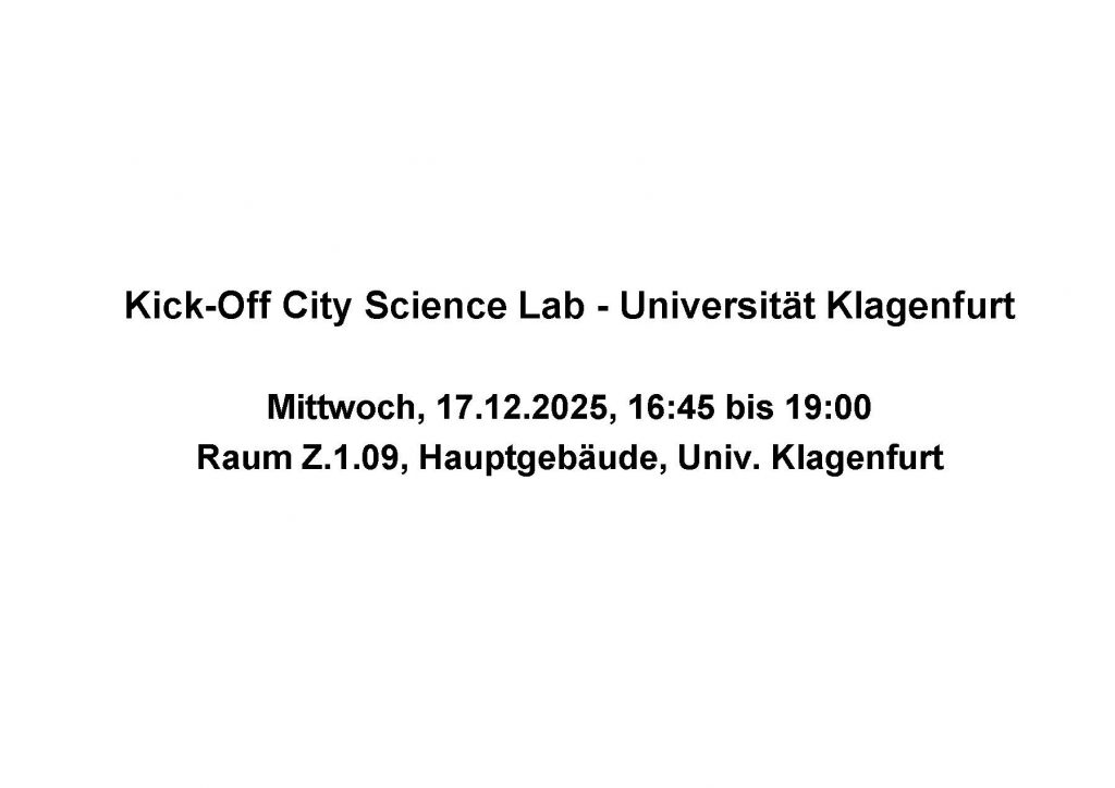 Wir laden sehr herzlich zur Kick-Off-Veranstaltung ein, mit der das Team des Anfang Jahr gegründeten City Science Lab – Universität Klagenfurt (CSL-AAU) sich der Universitätsöffentlichkeit vorstellt.